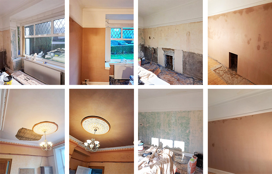 • Dry lining, plasterboard erection over brickwork, studwork, or badly damaged walls